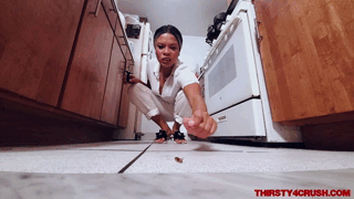 ITS JUST AN AVERAGE DAY DOING WHAT A HOUSE WIFE DOES, CLEANING, DOING THE DISHES, WIPING DOWN THE KITCHEN WHEN ALL OF A SUDDEN THESE BUGS THAT LOOK LIKE CRICKETS JUST START APPEARING OUT OF NOW WHERE AND THEY ARE INVADING MY SPACE AND INTERRUPTING ME FROM DOING MY HOUSE WORK! WHAT IS A GIRL TO DO?? MY ONLY CHOICE IN THE MATTER IS TO CRUSH EVERY ONE OF THE LITTLE FUCKERS UNDER MY SANDAL FEET!